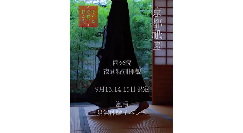 京都祇園 西来院 夜間特別拝観にて9月13(土)14(日)15日(月)限定で嵐湯 足湯体験…